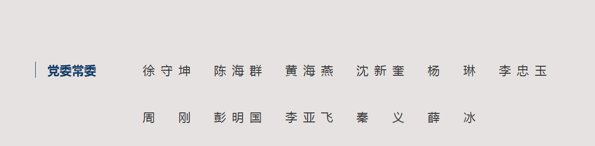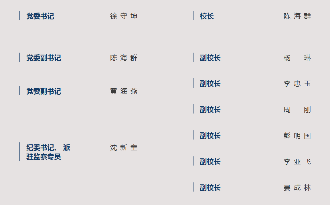 党政领导:徐守坤、陈海群、黄海燕、沈新奎、杨琳、李忠玉、周刚、彭明国、李亚飞、晏成林