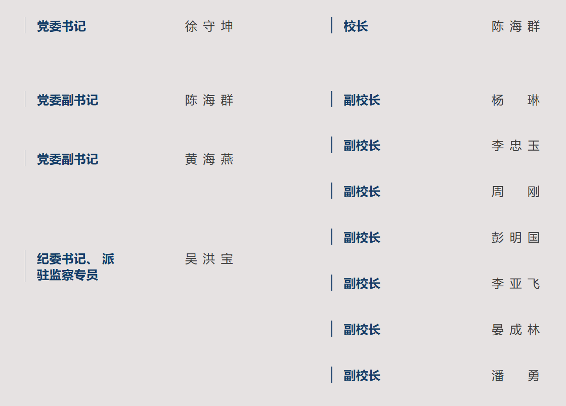 党政领导:徐守坤、陈海群、黄海燕、杨琳、李忠玉、周刚、彭明国、李亚飞、晏成林、潘勇、吴洪宝