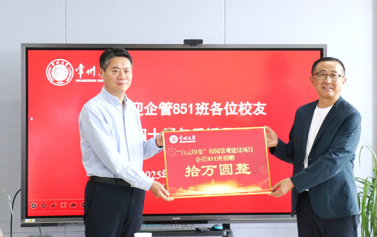2025年5月10日,在常州大学47周年校庆日之际,商学院企管851班校友重返母校,畅叙同窗情谊,共话奋斗时光。常州大学党委副书记、校长陈海群,商学院关工委退休老教师孙盘兴、钱增泉、朱华,党办校办校友办主任史海峰、副主任邓伟,商学院党委书记龙涌澜和企管851班校友30余人出席活动,学院党委副书记王彩芳主持活动。