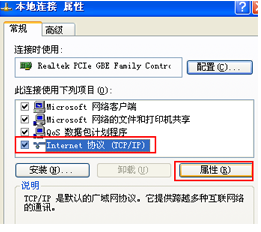 3.屏幕显示本地连接属性,选择“Internet协议(TCP/IP)”,双击【属性】按钮